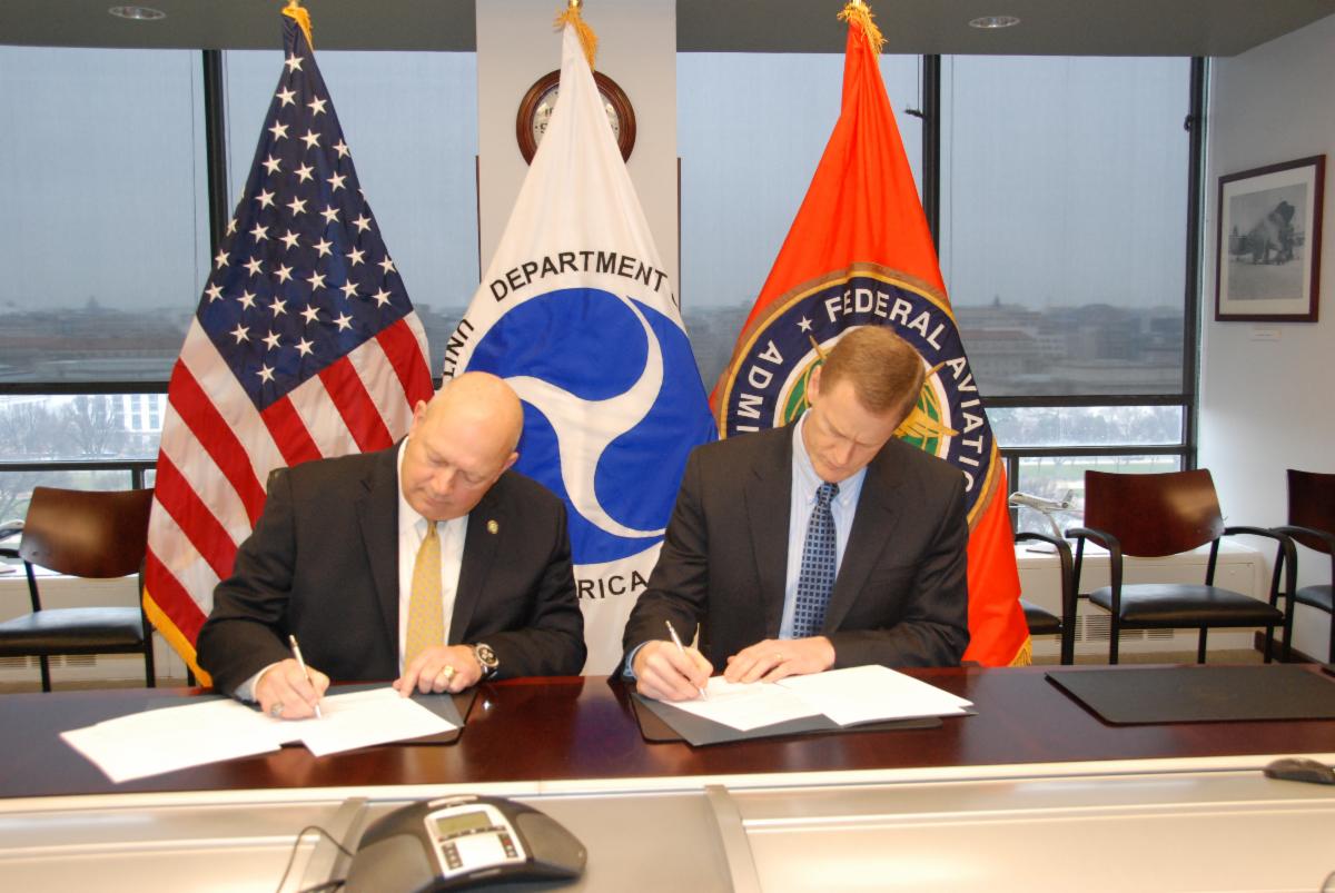FAA Administrator, Steve Dickson, and NASAO Chair, John Binder, signing the Memorandums of Understanding. |