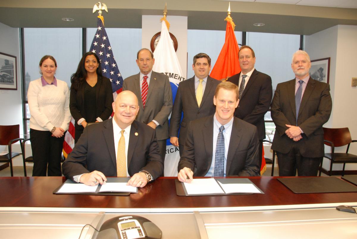 Administrator Dickson and Chair Binder with NASAO and FAA MOU representatives prior to the signing. |