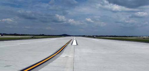 Removal of runway markings was an important step in recent reconstruction and rehab work at Nashville Int’l. |
