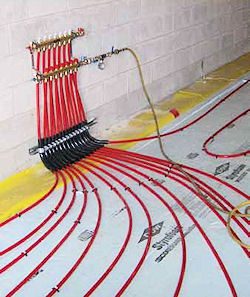 A photo of one of many manifolds which will regulate the in-floor heat.