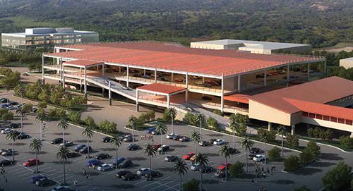 The new 520,000-square-foot structure includes a three-level consolidated rental car facility, a customer service building for 11 car rental companies and a bus transit station. Passengers get to and from the multi-purpose center via a covered, elevated walkway that spans the 1,200-foot distance to the terminal – and eliminates the need for shuttle buses.