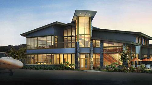 RZR's 8,000-square-foot terminal building includes a dedicated pilot lounge with a kitchen, resting area, shower and two soundproof sleeping rooms that are accessible 24/7 with coded entry.