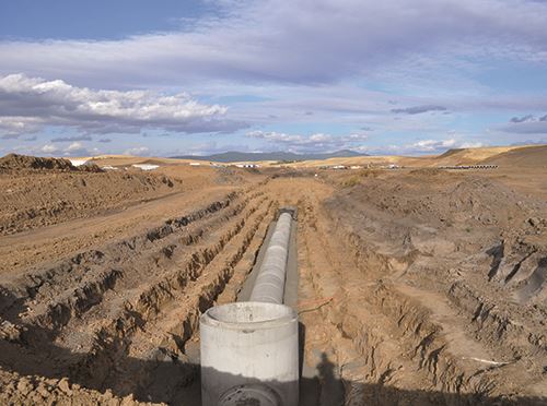 The solution? Divert an approximately 1½ -mile-long segment of the creek so it runs along the north side of the new runway, then curls around its east end. The creek was also enclosed inside a roughly 3,100-foot-long culvert, created with concrete box-culvert sections made by Oldcastle Infrastructure. The culvert sections are 8 feet wide and 6 feet tall.