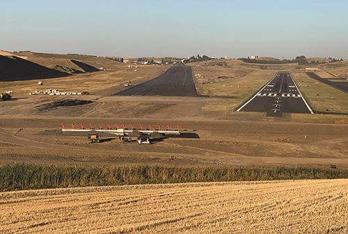 Though beautiful, the surrounding topography and the runway’s orientation significantly reduced the airport’s reliability during inclement weather. As such, prime contractor M.A. DeAtley Construction moved roughly 8 million cubic yards of soil to resculpt the hills into an area flat enough for a runway and remove any terrain impacting the airport’s reliability.