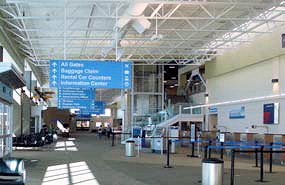 All that changed in January, when the airport’s new $30 million six-gate terminal opened for business. With about 95,000 square feet of space, it is almost three times bigger than the previous facility. The new two-story building is “a modern building that looks like it belongs in this century,” says URS manager Ken Yeager, noting that it is much more open and airy than the old boxy terminal.