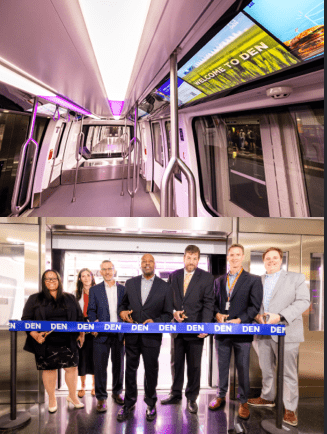 DENVER â JULY 2, 2024 â Denver International Airport (DEN) today commemorated six brand new train cars taking their first passengers to the concourses. These new train cars are the first to be certified as operational and are part of DEN’s larger effort to upgrade its Automated Guideway Train System (AGTS) train that carries passengers between the terminal and concourses. A total of 26 new train new cars are expected to become operational throughout this year and into next year.