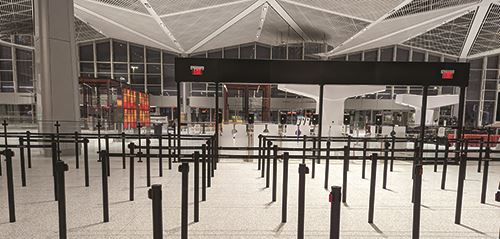 Dynamic signage at TSA checkpoints displays wait times and allows queue zones to be adjusted based on traffic. Passenger and baggage screening includes state-of-the-art technology to expedite screening while prioritizing safety.