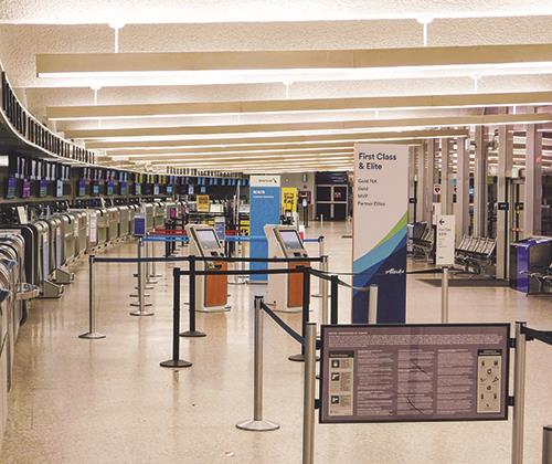 - Reconfigured queue lines at ticket counters and security checkpoints with stanchion toppers providing social distancing instructions