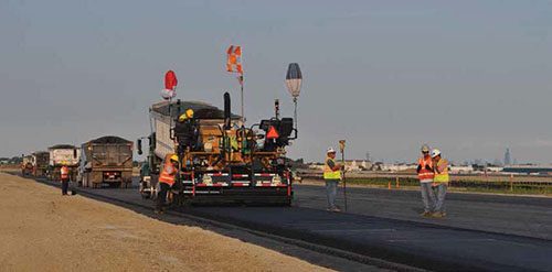 While the overall runway project is estimated to cost $500 million, the tab for paving, lighting and signage is expected to be $82 million. Walsh and Terrell formed a joint venture for the $47.5 million taxiway project and K-Five is the paving contractor.