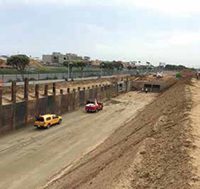 To meet runway safety area requirements for 6L-24R, the airport will cover portions of the Argo Ditch, a stormwater open channel that drains the north airfield. Extra infrastructure was needed because a portion of the channel lies within the runway safety area limits, explains Shammi Ratti, P.E., vice president of Aviation with AECOM (formerly URS). New components include a 542-foot extension of the existing concrete box culvert system using three 8-foot by-10-foot reinforced concrete box culverts connected to a newly constructed headwall outside the new runway safety area.
