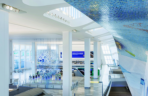 Project designers focused on improving passengers’ travel experience with everything from commissioned public art to an island configuration for the concourses. The efforts yielded many enhancements, such as hotel-style restrooms and less time spent inside aircraft taxiing from the runways.