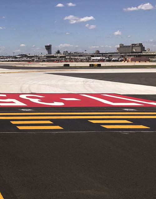 facts&figures Project: East Airfield Rehabilitation Location: Philadelphia Int’l Airport Cost: $25 million Funding: 75% federal; 25% state & local Scope: 132,500 sq. yards of new pavement in 8 areas, including 2 aprons, multiple taxiways & taxiway intersections Unexpected Element: Crews had to remove more than 26,500 sq. yards of asbestos-tainted asphalt Construction: March 2019-July 2020 Of Note: Project completed 71 days ahead of schedule