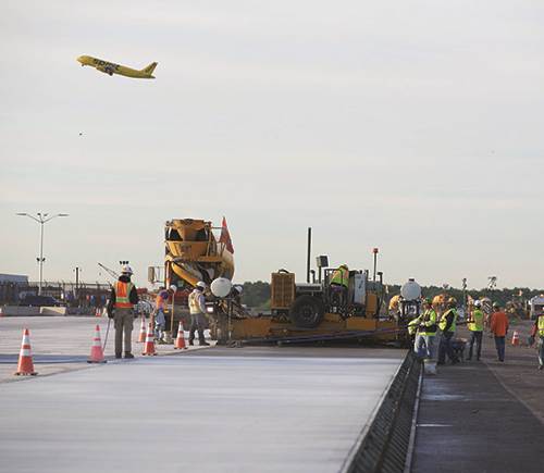To meet the deadline, H&K had multiple crews working around the clock. One group was active in a given area during the day, and another crew worked at a different site at night. Night work on active taxiways could only occur from 10 p.m. to 6 a.m.