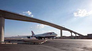 Ron Sheahan, a principal with system consultant Lea+Elliott, describes the situation as "complicated geometry." The guideway not only had to cross a taxiway, roadways and miscellaneous facilities, it also had to maintain the proper slope and grade so the train could operate at peak efficiency while ensuring passenger comfort and safety.