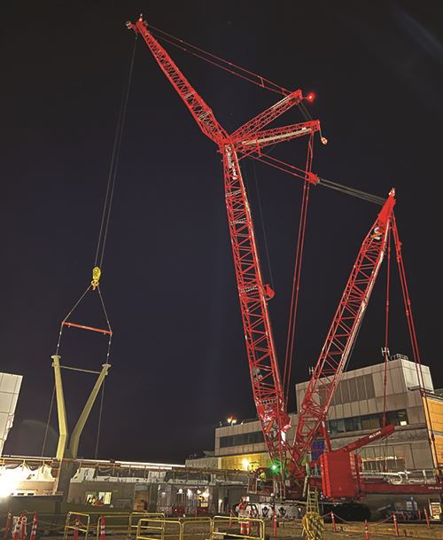 Most of the structural pieces are being moved into place between midnight and 4 a.m.