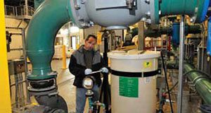 The nuts and bolts of the new system began with re-routing winter stormwater that would normally discharge to the Columbia Slough on the south side of PDX to the Columbia River located to its north. CDM Smith designed a processing component that controls flow through the three new pump stations, 6 miles of pipeline that connects them to each other, the treatment plant and new outfall at the Columbia River. Online meters give real-time biochemical oxygen demand readings of the stormwater pollutant concentration in any area where they are located, says Mark Ryan, CDM Smith project manager. From that, he explains, pump stations are programmed to either pump to a certain area, certain tank or the treatment plant.