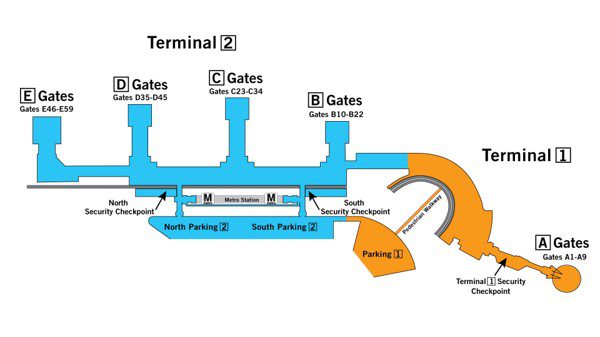- Week of June 6-10: Road signs leading to terminals and parking garages will transition from Terminals A, B and C to Terminals 1 and 2.