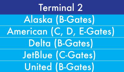 Signs for the parking garages associated with each terminal also will be updated to Parking 1 and Parking 2, coinciding with the new terminal names. The airport’s Economy Parking Lot will keep the same designation.