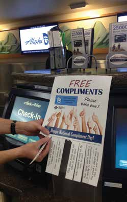 Since then, the airport has staged one or two primary kindness events each month, with extras during holidays and special events. Sometimes, the Kindness Team sets up gateside “treat stations” with complimentary drinks and snacks for arriving and departing passengers. Other times, members roam the concourses, surprising unsuspecting travelers with free candy and children’s toys. On National Compliment day (Jan. 24), RNO volunteers set up a themed booth and issued kind words to airport visitors.