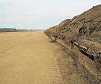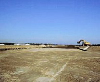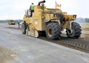 The reclaimed material was used to help adjust the grading, creating a standard 1.5% crown section to solve the drainage problems. The reclaimed material was mixed with cement for the base course for the runway. It was then topped with 10 inches of Portland cement concrete to serve as the runway surface.