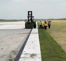 The same advantages were realized during the runway project, saving time and money as well as creating a finished project that will long outlast a simple asphalt overlay, Stamper says.