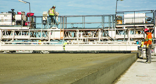 New 7.6-by-6.1 meter concrete slabs were laid over stable existing slabs. The new joints were carefully aligned with existing joints to control movement of the concrete slabs and reduce the risk of cracks. A special geotextile membrane studied in the laboratory by Englobe was applied between the new and old slabs to allow them to move independently.