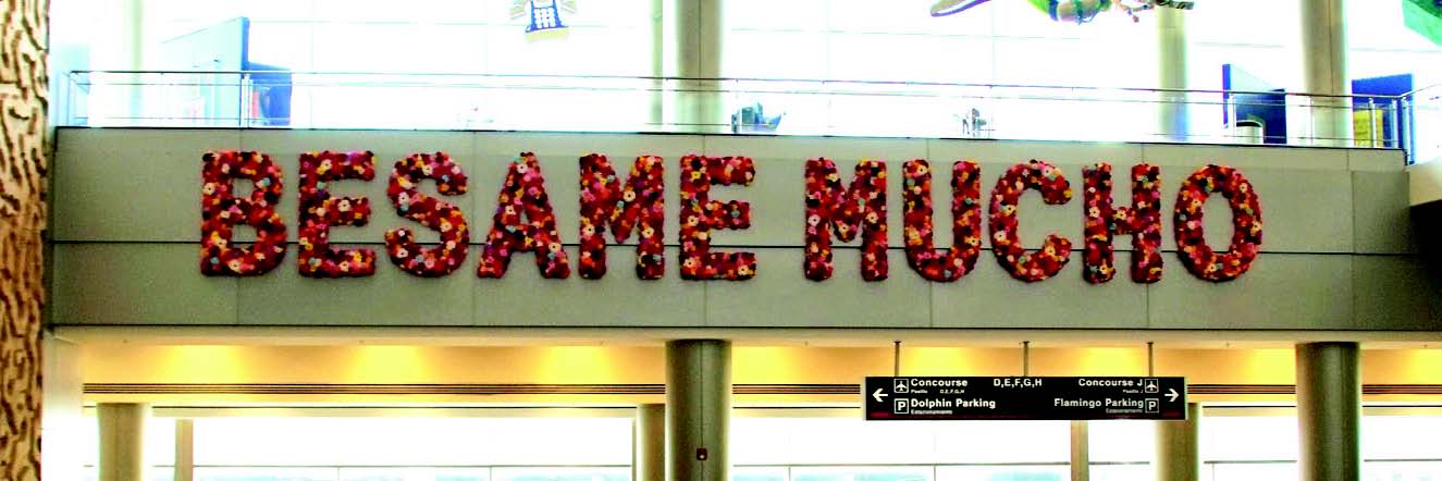 Peace and Love acts as a universal welcome sign in Concourse D of the North Terminal; while Besame Mucho, in the South Terminal International Greeters Lounge, speaks more directly to the airport’s large segment of Spanish-speaking passengers. (MIA offers more flights to Latin America and the Caribbean than any other U.S. airport and is the third-busiest airport in the U.S. for international passengers.) “Besame mucho” loosely translates to “kiss me a lot” in English.
