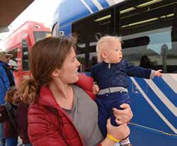 The new TRAX light rail line includes six miles of ballasted and imbedded double track that runs in separate rights-of-way for some stretches and in-street along roadways for other sections. The initial schedule has trains leaving SLC every 15 minutes, with projected ridership reaching 14,000 daily passengers by 2030.