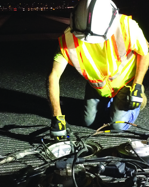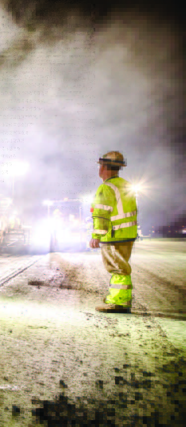 With 100 to 200 workers on the runway each night, it was a little like “controlled chaos,” he quips. Once the clock struck midnight and crews received clearance from airport operations, workers moved quickly and efficiently to set up, perform the scheduled work, clean up and clear the field by 5 a.m. Making sure there were no materials left behind that could cause foreign object damage to aircraft was a priority every night.