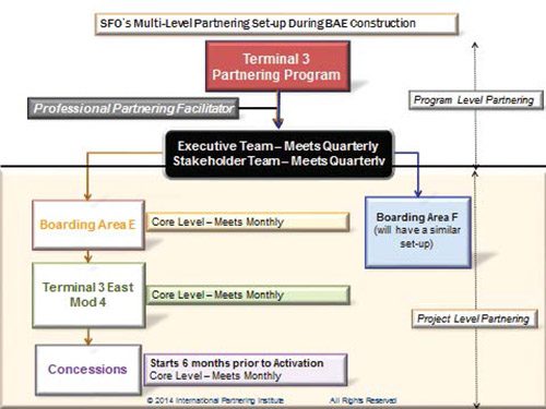 Partnering worked well then, and again in 2007 with another major capital project, Satero reports. The practice has been used throughout major projects ever since, each time with more people and strength, as more lessons have been learned. It is now wholly integrated into the way SFO bids and executes construction projects, notes Satero.