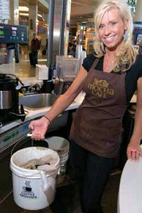 According to Leavitt, as much as 16 tons of coffee grounds and food waste are recycled each month. Next year, the airport hopes to boost its numbers even higher by encouraging travelers to participate in a post-consumer food waste recycling program.