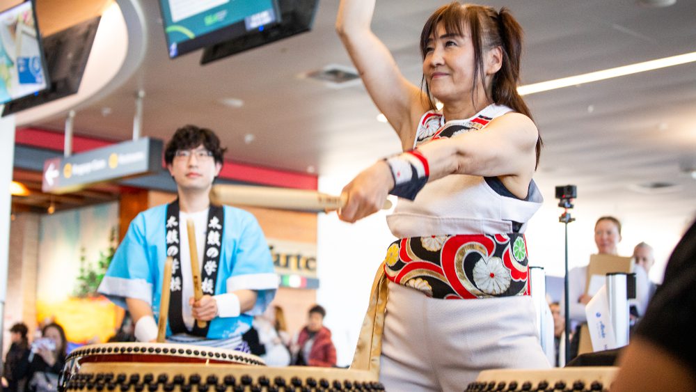 Port of Seattle Commissioners Ryan Calkins and Sam Cho, Interim Managing Director of Aviation Arif Ghouse, and Port Executive Director Steve Metruck joined Alaska CEO Ben Minicucci and Hawaiian CEO Joe Sprague in the festivities. Today’s celebration included specialty cocktails in Alaska’s N Concourse lounge, a Taiko drumming ceremony, speeches, and a ribbon cutting.