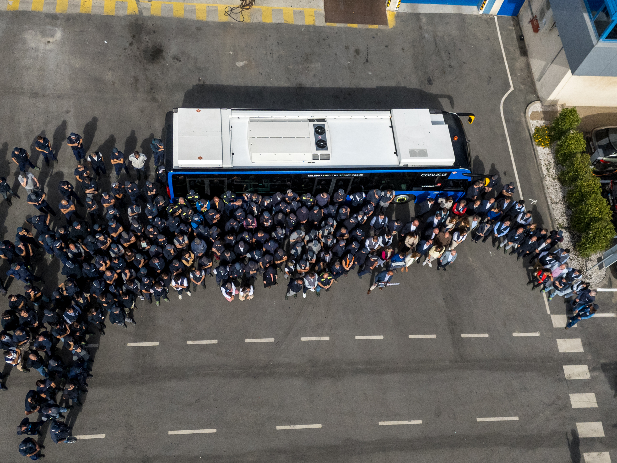 Global market leader COBUS Industries has reached another milestone with the line-off of its 5,000th apron bus. The fully electric e.COBUS 2700S was officially delivered to British Airways in a ceremony at CaetanoBus plant in Gaia, Portugal, on the 24th of September 2025. Among the invited guests were representatives of British Airways, the shareholders of COBUS as well as colleagues from COBUS, CaetanoBus and Daimler involved in the COBUS project.