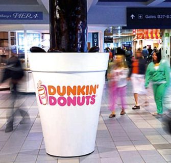 Under the BOS program, AMI developed a multi-dimensional, multi-year, experiential campaign that included quarterly sampling programs, a 7-foot-tall brand icon of the Dunkin’ Brands Styrofoam coffee cup located in two high-traffic areas and a 117-foot long pedestrian bridge graphic. During the 10-month campaign, more than 25 million travelers through BOS were exposed to the advertising message.