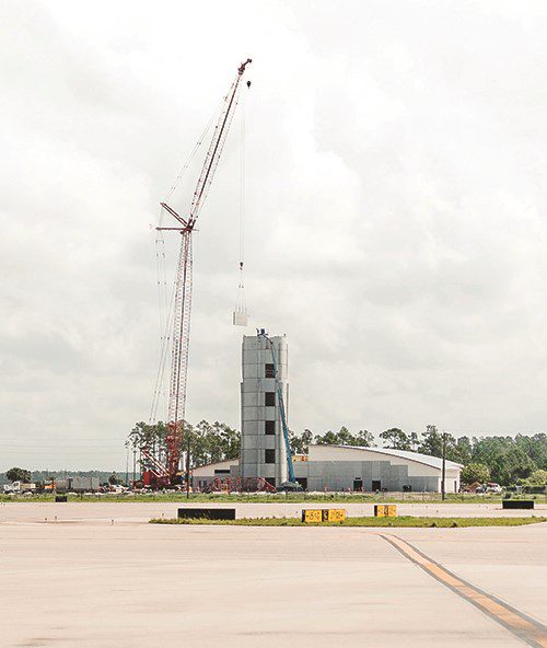 Although the new tower is not located directly on the airfield, construction extended into RSW’s airspace. That required contractors to obtain a permit for the 280-foot lattice boom crane they used to erect the facility. At the end of each workday, crews “knuckled down” the crane to minimize its intrusion into the airspace at night.