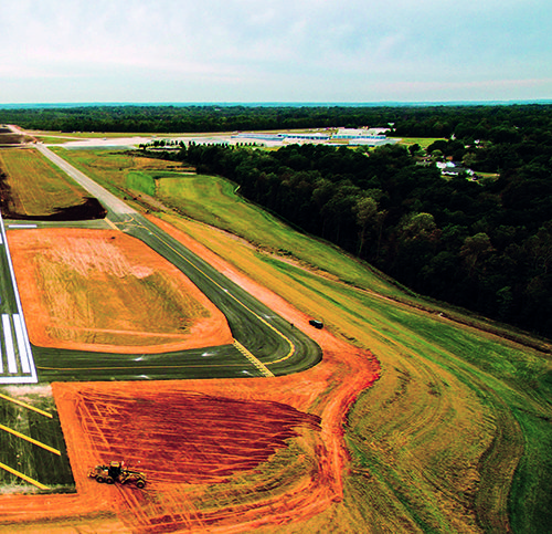 The runway project was executed in three phases. Phase one started in 2016 and was completed in mid-2017. It centered on moving 1.7 million cubic yards of soil and filling in a small pond that sat in the path of the runway extension.