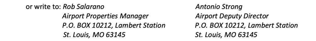 E-mail questions regarding the RFP to: Rob Salarano at: RCSalarano@flystl.com (cc: Antonio