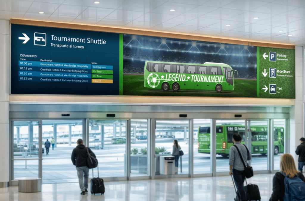To help airports and consultants envision a customized EventReady implementation, Synect created a fictional event scenario called the Legend Tournament. This scenario shows how touchpoints across an international passenger’s journey can be enhanced for a major sporting event. It also demonstrates how sponsoring brands can be included.