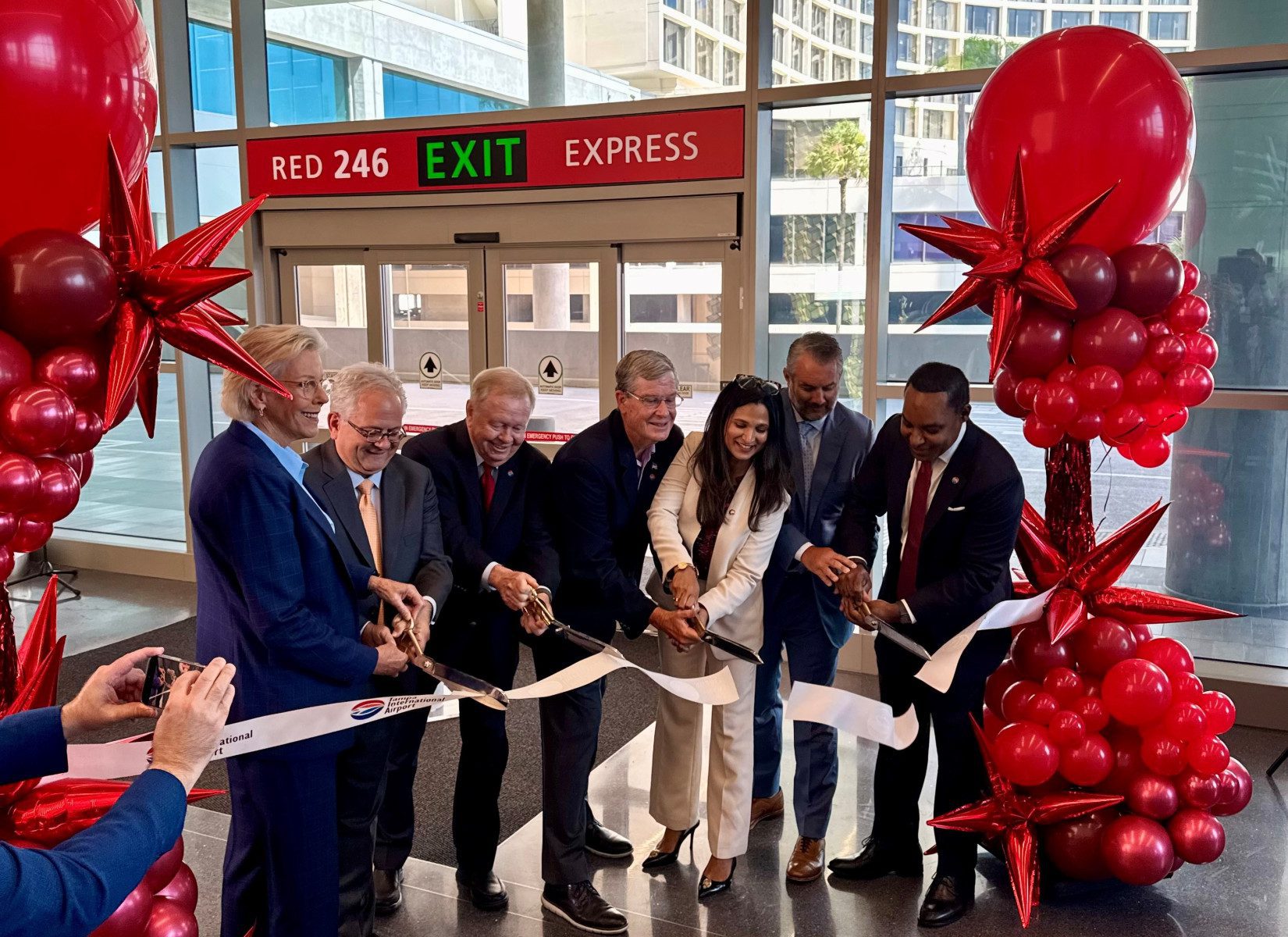 Community partners joined Airport officials to mark the opening this week of the building and traffic lanes, which are on the north side of the Airport’s Main Terminal building. While crews are finishing some minor work on the area this month, the Red Express building will open to the traveling public at 12:01 a.m. Tuesday, Aug. 12.
