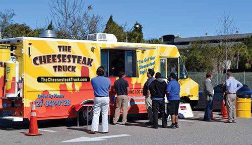 While officials finalize changes to the food and beverage scene inside TPA's terminals, new options roll into the airport's cell phone waiting lot every day in food trucks managed by an outside vendor. With options such as The Cheesesteak Truck and Chowder Bus, the pilot program has already generated a loyal following since it began in December 2012, reports Laurie Noyes, manager of airport concessions.