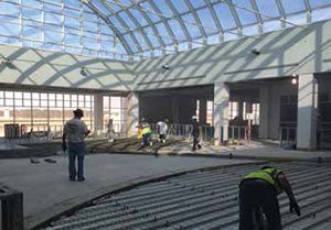 After the airport established its preliminary scope of work for the project, Southside was hired in December 2014 and began demolition/construction the second week of January 2015. While waiting for other approvals, prep work orders were released to keep schedules on track, Laframboise explains. Crews also removed existing finish materials, stairs and escalators, and filled in a portion of floor between the original first and second floors.