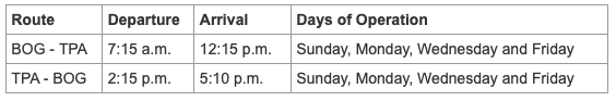 “This new route to Colombia is a significant victory for the Tampa Bay region. We are encouraged by this addition at Tampa International Airport, knowing this flight will strengthen our business connections with South America.”