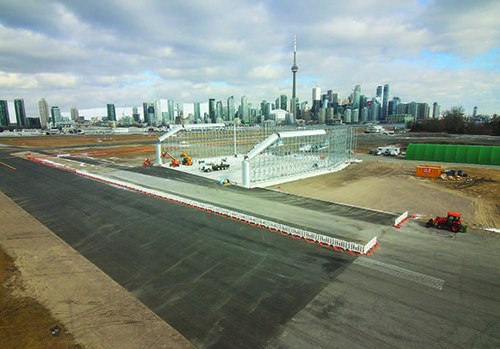 Because PortsToronto operates the port on Lake Ontario as well as the airport, the project was able to leverage lake access through the harbor. The barging operation allows the construction team to transport materials and employees from a cruise ship terminal in the Port of Toronto to a temporary dock on the east side of the airport. The new transport method greatly reduces the impact of construction traffic for local residents and airport travelers, and has received huge compliments from the community, reports Cabral. “Doing three years of construction in a mixed-use environment-bringing nightly the volumes of trucks we experienced through the community-would have been quite intrusive,” he reflects.