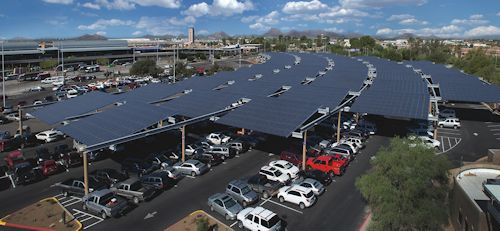Capitalizing on the roughly 350 sunny days Tucson experiences each year, the airport authority constructed a two-phase, 2.5-megawatt solar installation in the hourly and daily parking lots at TUS. “We thought it would be a great program to bring to the airport,” Smejkal relates, noting that Tucson is a solar city and TUS is the first and last impression people have when visiting the area.