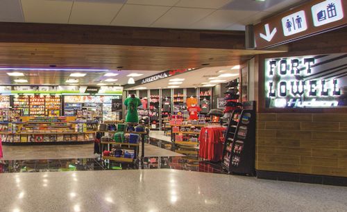 Design concepts for the new concessions fit in well with the overall look and feel of the facility, Hempel adds. “They are innately Tucson,” she says. Ink by Hudson, for instance, sells books, stationery, fashion, artwork, toys and travel items in a 1,000-square-foot, Tucson-inspired space adorned with weathered wood beams and Southwest imagery. Gates Pass is a 2,529-square-foot travel essentials and convenience store on Concourse A. Its name and décor pay tribute to the scenic Gates Pass that runs along the crest of the Tucson Mountains.