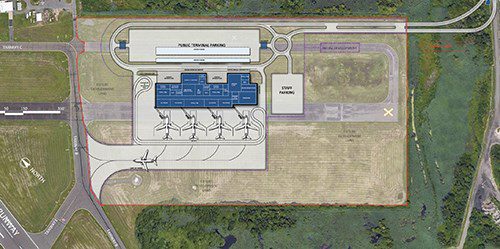 Preliminary plans for the new terminal, dubbed the East Terminal, include four to six gates and concessions. While the holdroom capacity has not been determined yet, the new terminal will contain two TSA security lanes, just like the existing terminal.