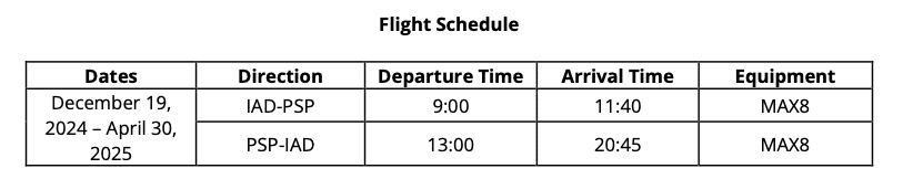 “Our addition of nonstop service to Washington, D.C.’s Dulles International Airport underscores PSP’s success in expanding air service and connecting the Coachella Valley to global destinations,” said Harry Barrett, Jr., Executive Director of Aviation at PSP. “This route solidifies our role as a gateway to the world, providing seamless access to the East Coast, Europe, and beyond while creating new opportunities for tourism and economic growth in our region.”