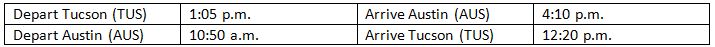 “This a very exciting announcement for Tucson International Airport,” said Tucson Airport Authority President and CEO Bonnie Allin. “This is a tremendous opportunity to bring the cultures and economies of Austin and Tucson closer together.”