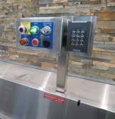 A central building core houses a tornado shelter and restrooms with 14 new handwashing stations that eliminate the problem of wet hands dripping across bathroom floors. Mechanical systems are housed above, on a second-story mezzanine.